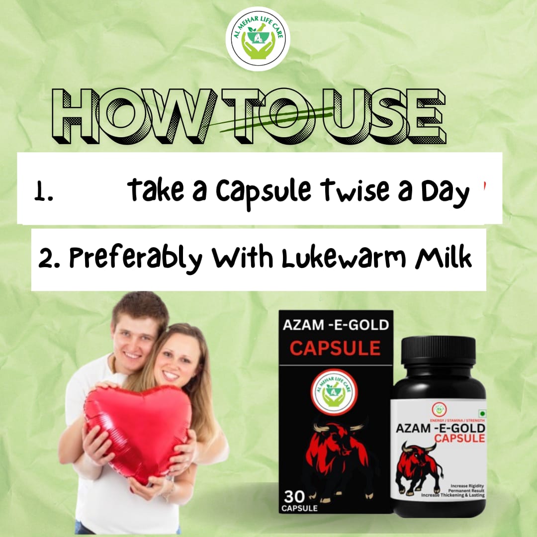 Azam-E-Gold is a premium herbal formulation designed to naturally enhance strength, stamina, and overall vitality. Made with a blend of time-tested Ayurvedic ingredients, it helps support physical endurance, boosts energy levels, and promotes overall wellness. Regular use may aid in improving confidence, performance, and general well-being without harmful side effects.